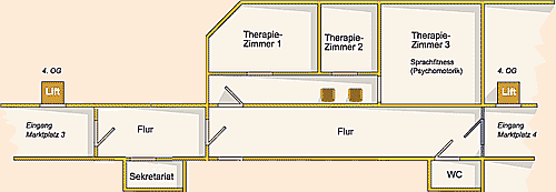 Herzlich willkommen in unserer Praxis. Gern zeigen wir Ihnen die Räum-lichkeiten, in denen unsere Therapeuten arbeiten. Klicken Sie zur Bildansicht auf das jeweilige Zimmerfeld.